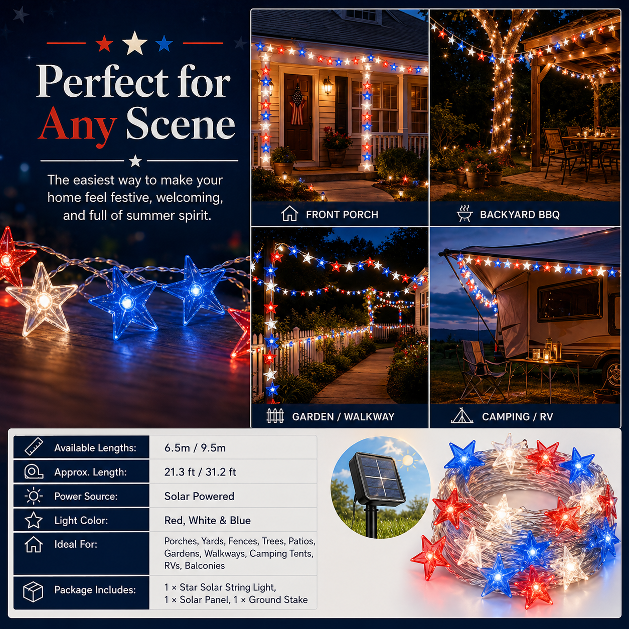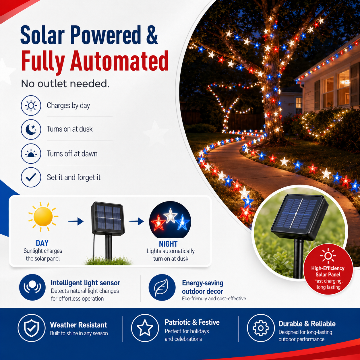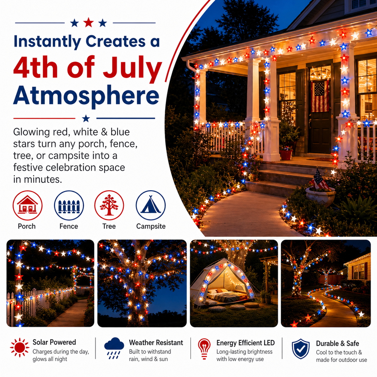 Patriotic Star Solar String Lights: Effortless Festive Brilliance